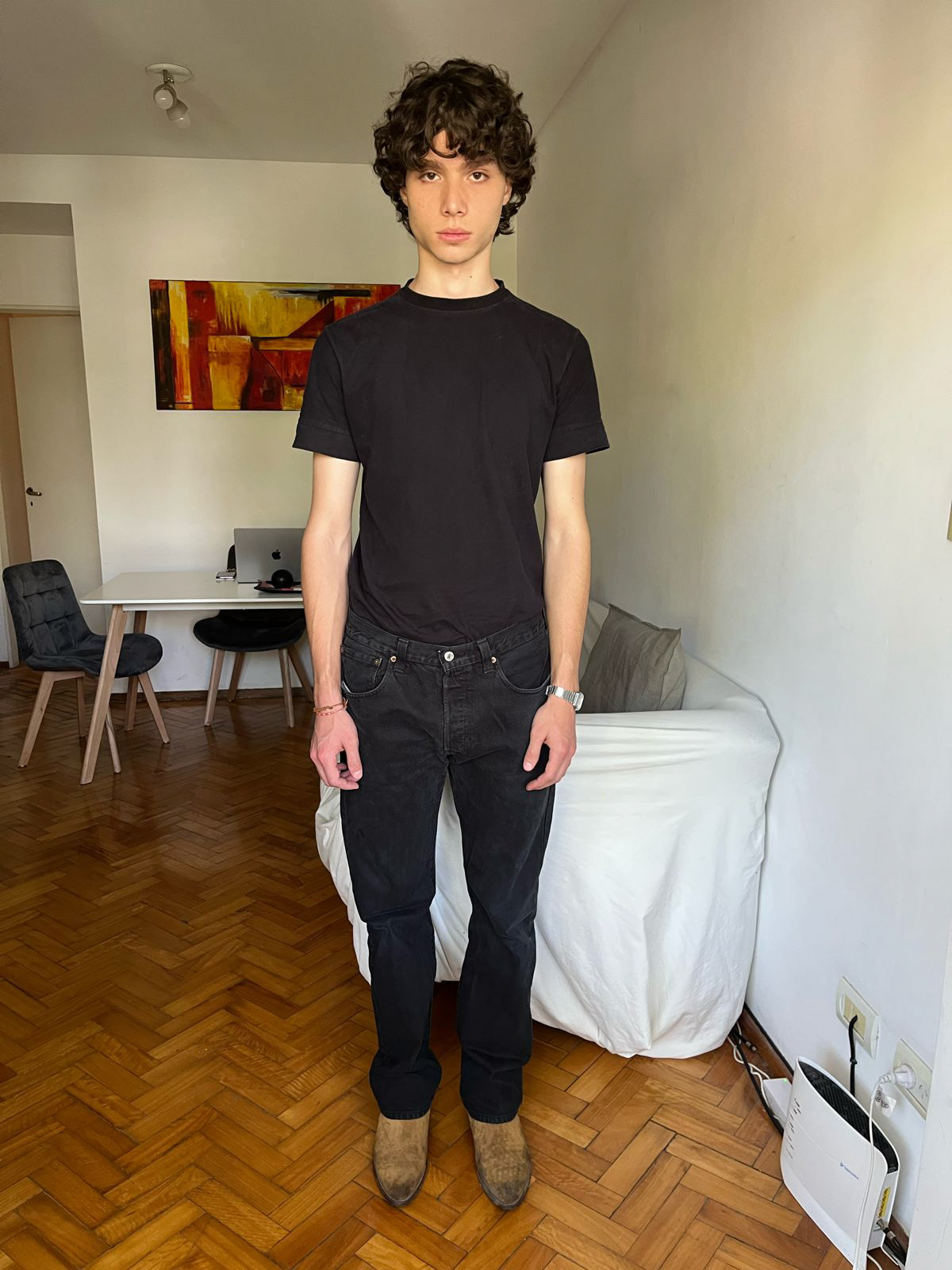 Altura · Height: 187 | 6'1/2 Pecho · Chest: 87 | 34"1/2 Cintura · Waist: 73,5 | 28"1/2 Caderas · Hips: 93,5 | 36"1/2 Ojos · Eyes: marrón | brown Cabello · Hair: castaño oscuro | dark brown Calzado · Shoes: 43 EU | 9 US